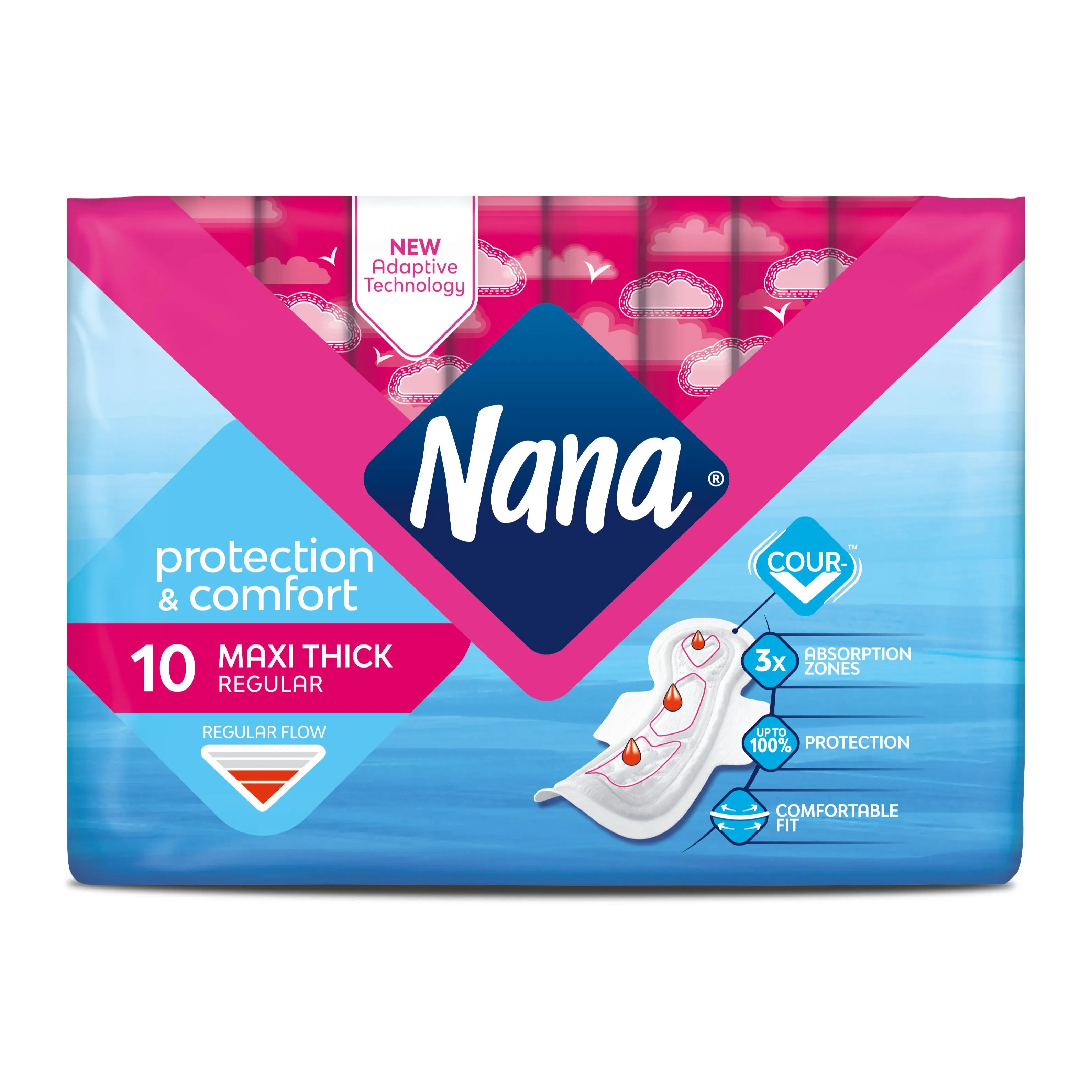 • Nana Maxi Thick Sanitary Pads With Wings, 10 Pads